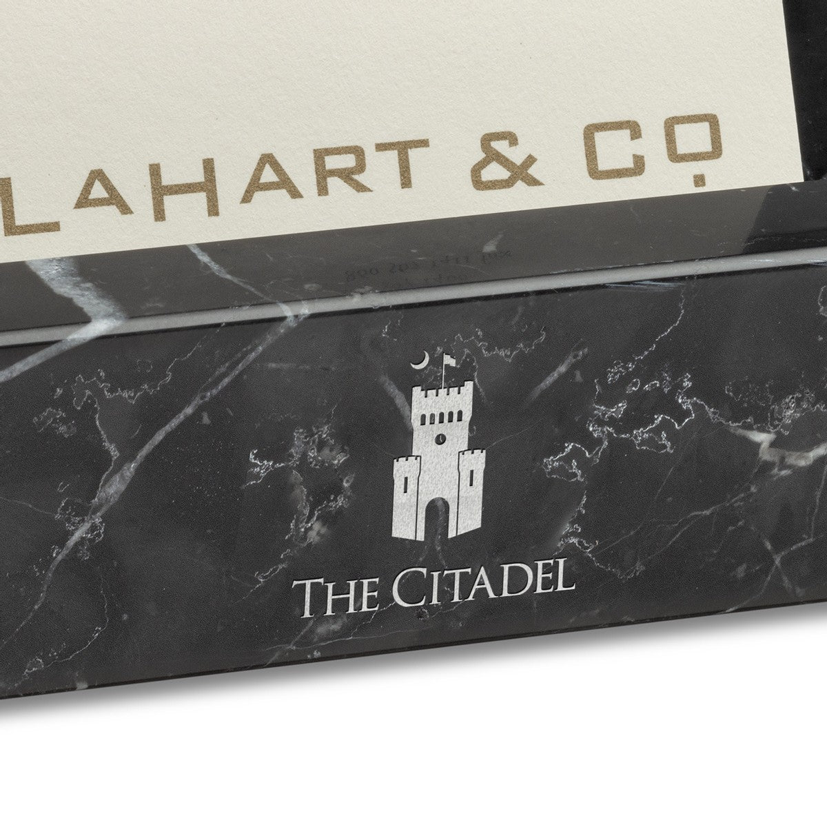 Perfect for new grads and seasoned professionals, the officially licensed Citadel marble cardholder is an essential for the desk of Citadel fans. The Citadel Logo is elegantly featured on the front of this substantial, solid marble card holder and accommodates all standard size business cards.