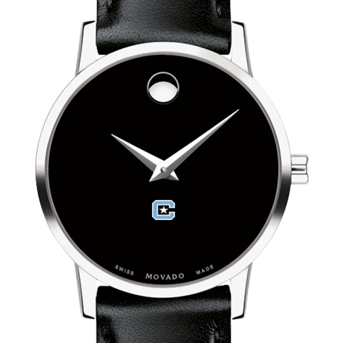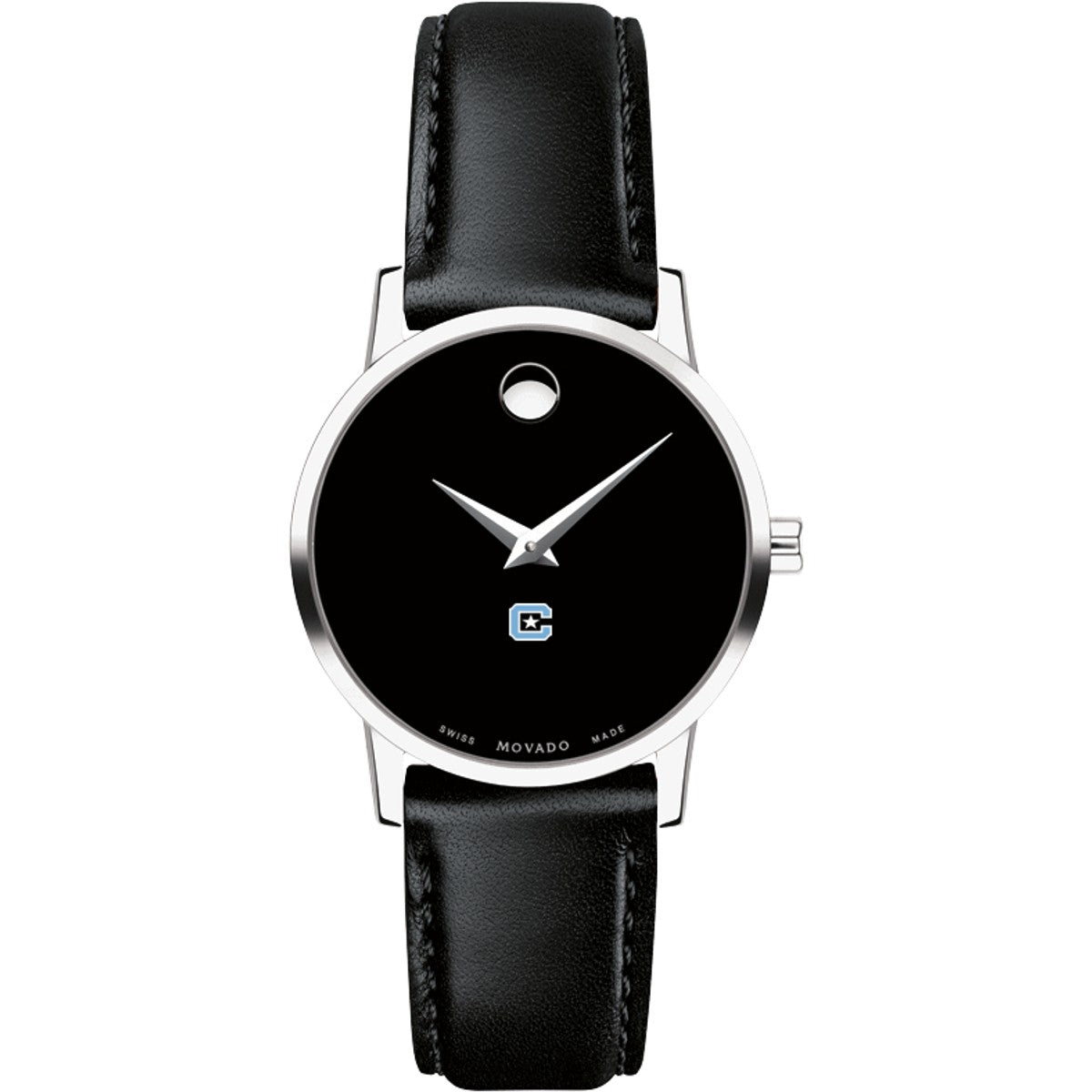 Citadel Women's Movado Museum watch features the Citadel Logo in full color at 6 o'clock on black dial. Created in 1947, the iconic concave dot symbolizes the sun at high-noon. Complimentary personal engraving.