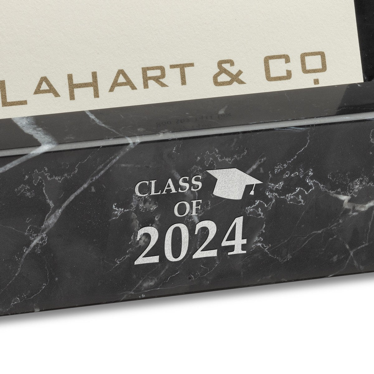 Perfect for new grads, the Class of 2024 marble card holder is an office essential. The Class of 2024 design is elegantly featured on the front of this substantial, solid marble card holder and accommodates all standard size business cards.