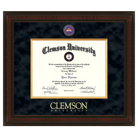 - The Fidelitas Diploma Frame from Clemson University is a finely crafted piece that embodies the essence of your college experience. Crafted from solid wood in the USA, this frame is the perfect way to showcase and protect your treasured Clemson diploma. With museum-quality conservation mounting materials, your diploma is guaranteed to remain in excellent condition for years to come. Not only is this frame a beautiful addition to your home or office decor, but it also serves as a proud symbol of your Clemson legacy. Order the Clemson University Diploma Frame, the Fidelitas, today and take your diploma display to the next level.
