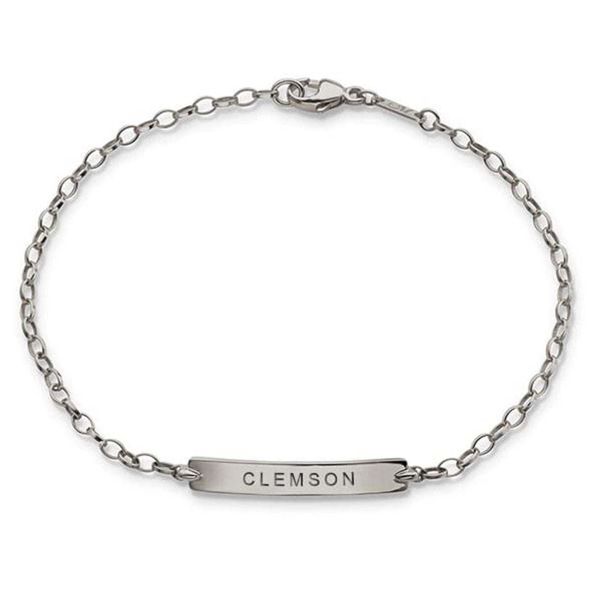 A feminine, delicate bracelet in sterling silver as appropriate for evening wear as day. "CLEMSON" engraved on slim banner accentuates the elegance.