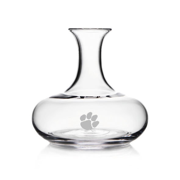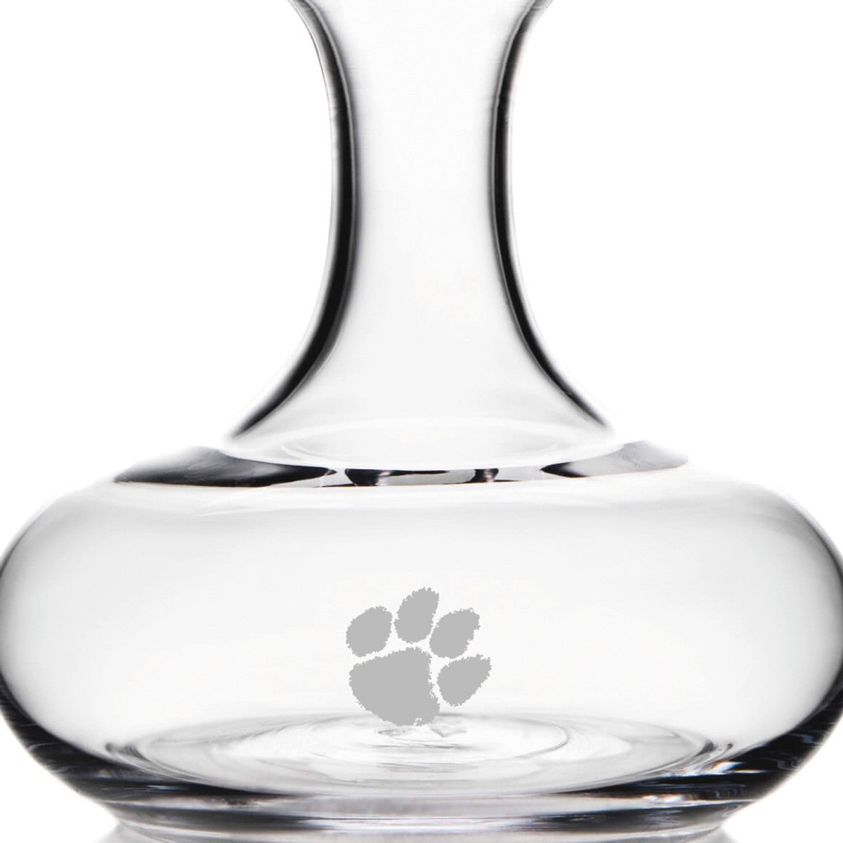 The Clemson Wine Decanter is an exquisite piece, crafted to aerate and enhance the flavors of your favorite wines. The Clemson Logo is beautifully etched into the hand-blown glass, adding a touch of Clemson pride to your table. With its graceful, wide base and slender neck, this decanter is designed for both functionality and sophistication, making it perfect for any formal dinner or casual gathering.
