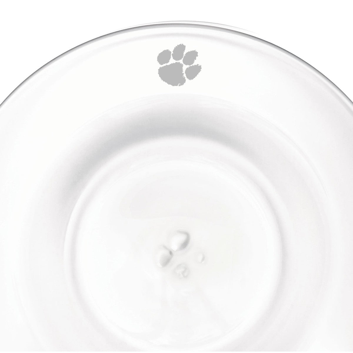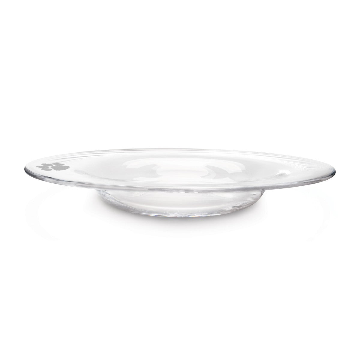 The Clemson Glass Celebration Platter is an elegant centerpiece for any gathering. Handcrafted with precision, the platter features the Clemson Logo beautifully etched into the smooth glass, making it a sophisticated display of Clemson pride. Its ample size and timeless design make it perfect for serving or as a decorative statement in your home.