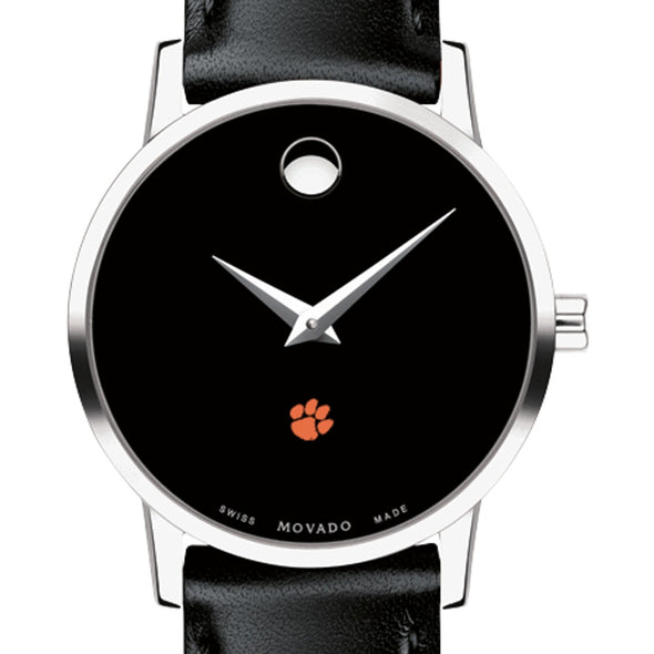 Clemson Women's Movado Museum watch features the Clemson Logo in full color at 6 o'clock on black dial. Created in 1947, the iconic concave dot symbolizes the sun at high-noon. Complimentary personal engraving.