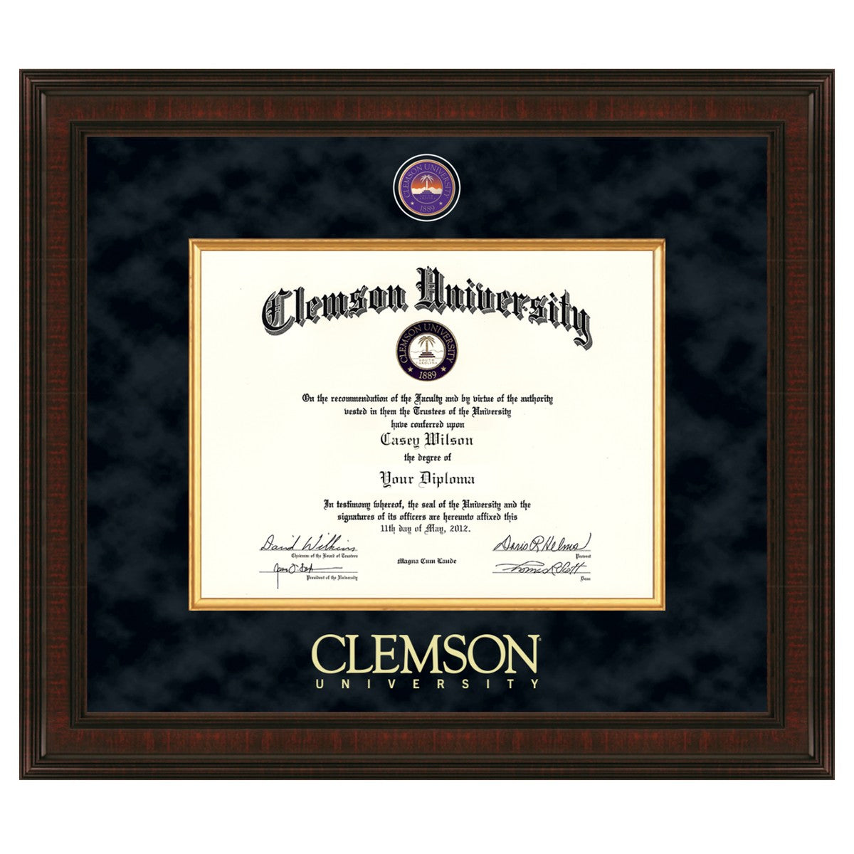 - Frame fits Clemson diploma measuring 8.5x11 H. Overall frame dimensions are 17.75x19.75