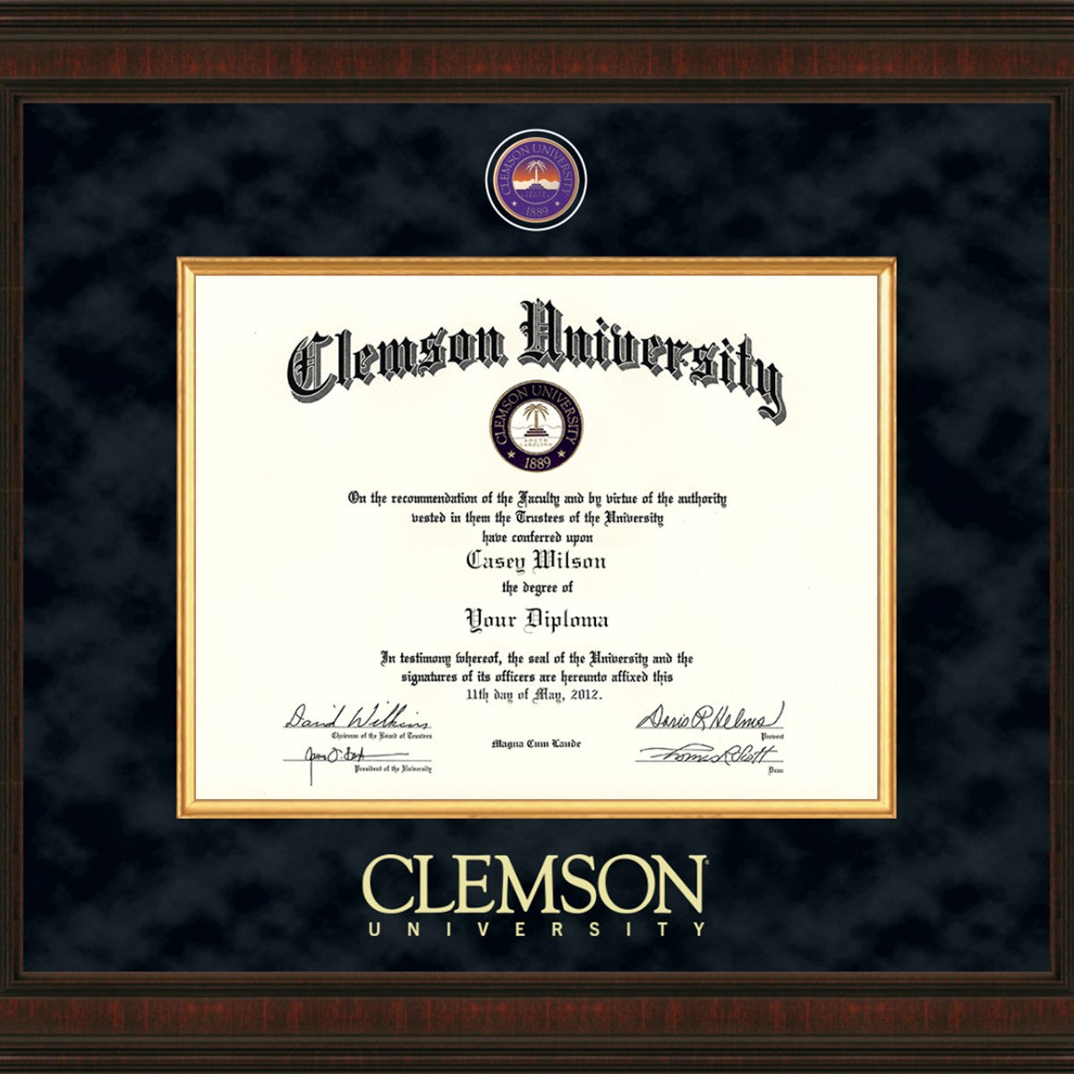 This Clemson diploma frame is specifically made to showcase and preserve your Clemson Diploma. Made from solid wood in the USA to meet stringent Library of Congress standards for archival document preservation.