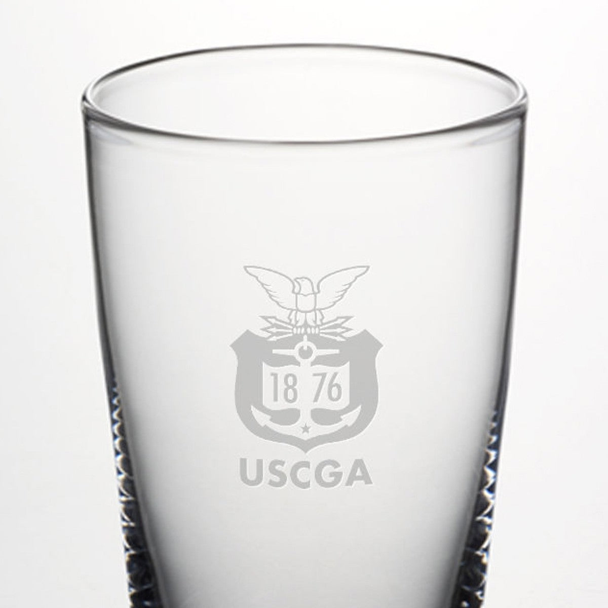 USCGA Pint Glass features the USCGA Logo handsomely engraved on the hand-blown glass. From its narrowly flared lip to its sleek, cylindrical body and sturdy, solid base, this pint glass is a classic.