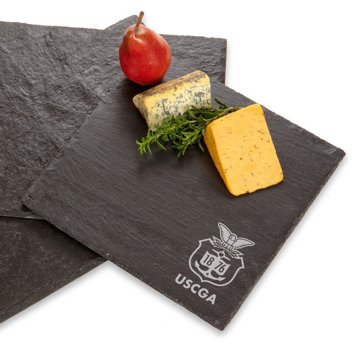 This US Coast Guard Academy Slate Server is a versatile choice for any occasion. Natural, textured slate with the USCGA Logo etched in the lower right corner.