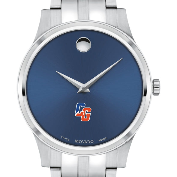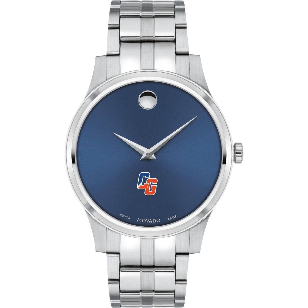 The US Coast Guard Academy Men's Movado Collection watch boasts a striking blue dial featuring the iconic USCGA Logo in full color. This timeless timepiece, renowned for its concave dot representing the sun at high noon, has been a symbol of elegance since its inception in 1947. Make it uniquely yours with free engraving without affecting order processing time.