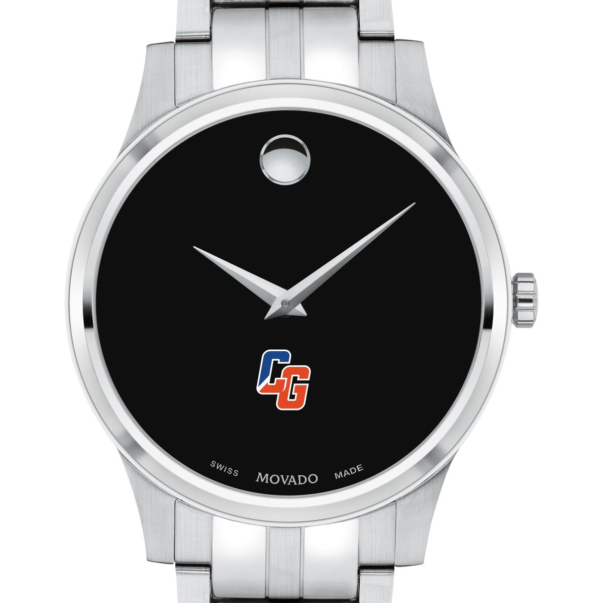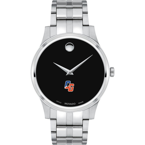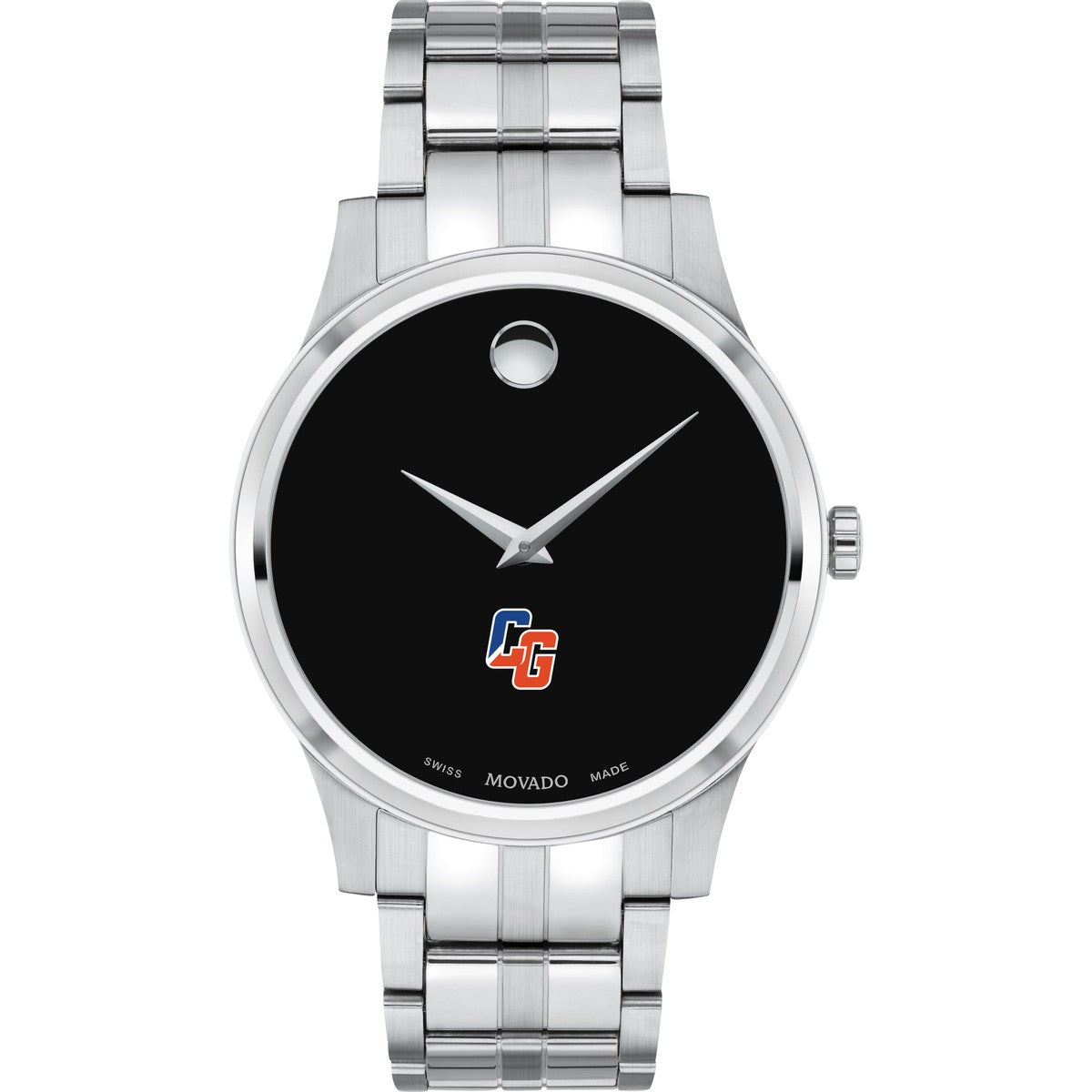 The US Coast Guard Academy Men's Movado Collection watch showcases the iconic USCGA Logo in full color on a sophisticated black dial. This classic timepiece, featuring the renowned concave dot symbolizing the sun at high noon, has been a design masterpiece since its creation in 1947. Personalize your watch with free engraving without any delay to your order.