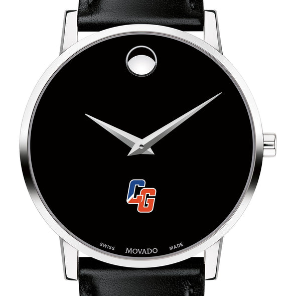US Coast Guard Academy Men's Movado Museum watch features the USCGA Logo in full color at 6 o'clock on black dial. Created in 1947, the iconic concave dot symbolizes the sun at high-noon. Complimentary personal engraving.