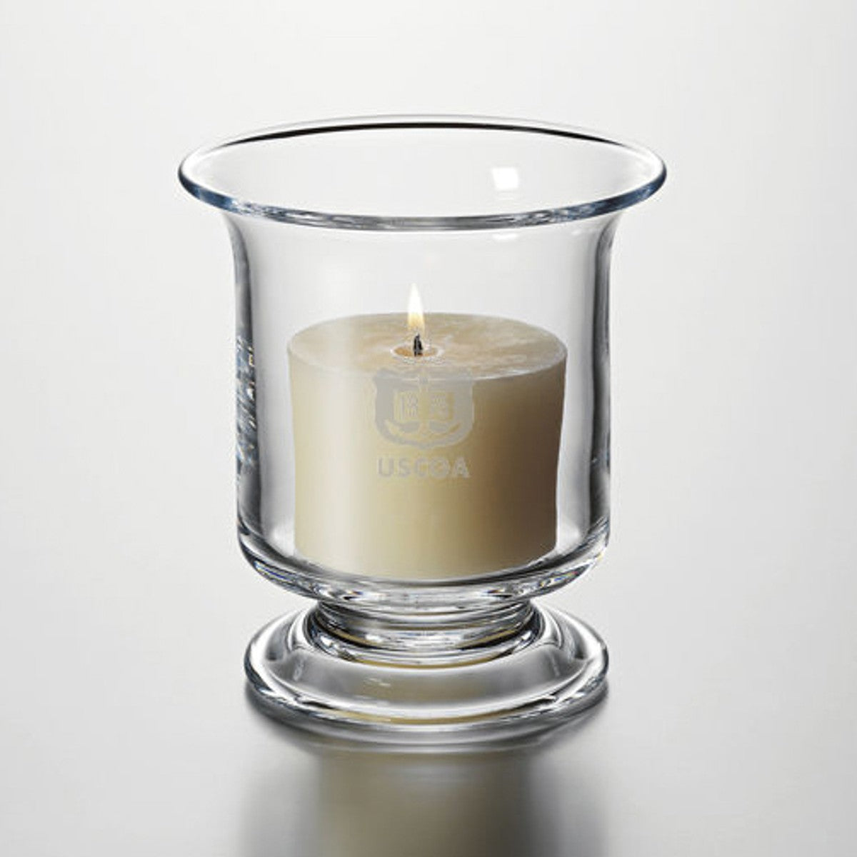 The USCGA Glass Hurricane Candleholder, with the USCGA Logo beautifully engraved on the handcrafted glass, is a great addition to any home. The versatile piece can be used for anything from cradling thick pillars and floating candles to showcasing delicate floral clippings.