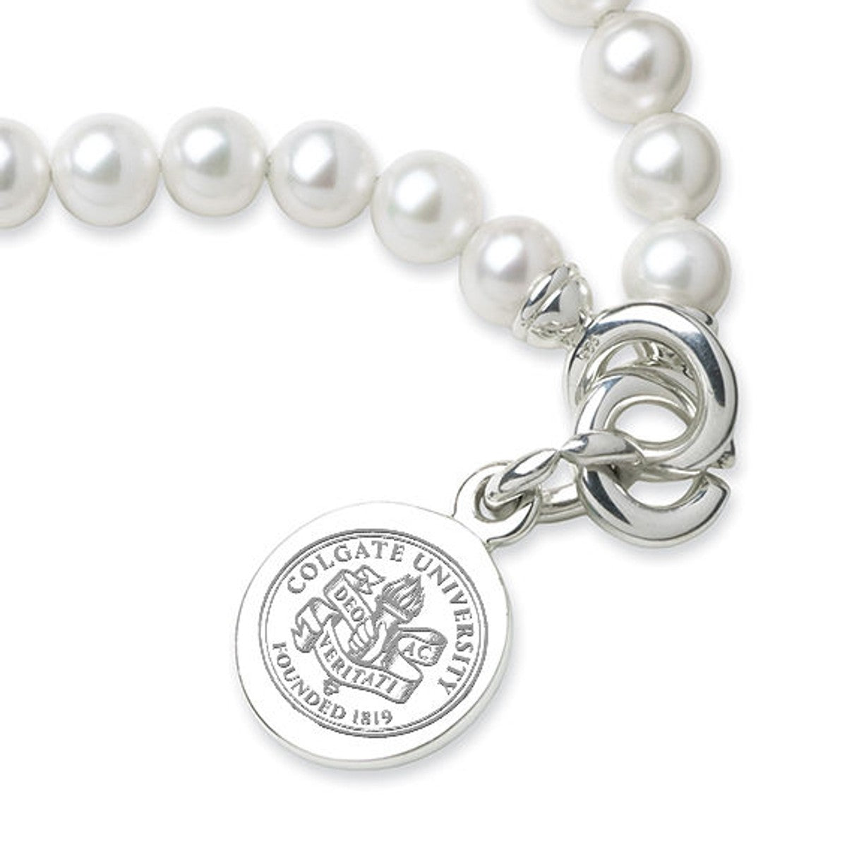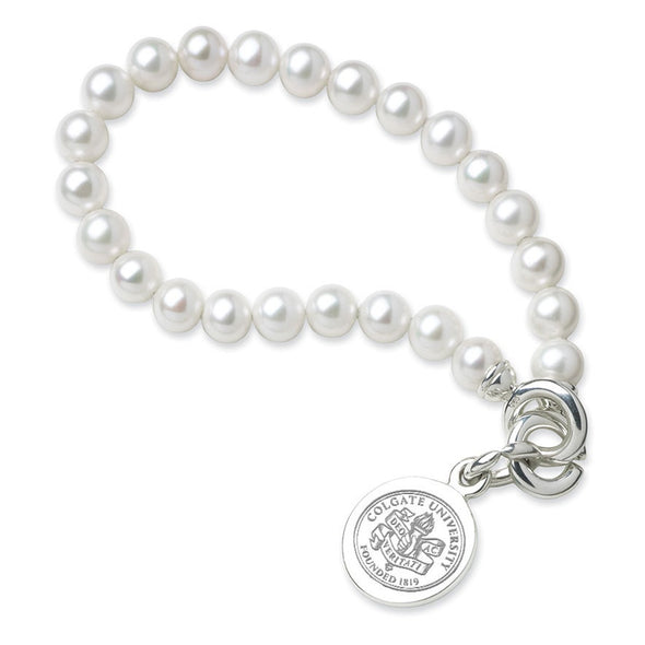 Colgate pearl bracelet and sterling silver Colgate charm features the Colgate seal delicately engraved on front and interlocking "C" clasp.