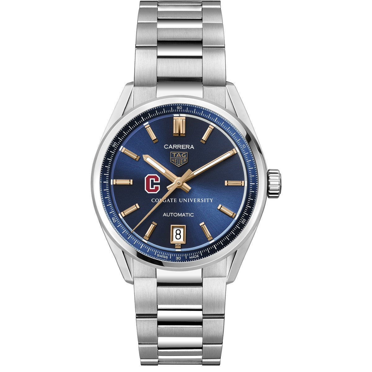 Discover the Colgate Women's TAG Heuer Steel Carrera watch, showcasing the Colgate Logo on a deep-blue sunray brushed dial with 18K 5N rose gold-plated hands and indexes. Powered by the Calibre 7 movement, this timepiece is designed for precision and excellence. Complimentary personal engraving.