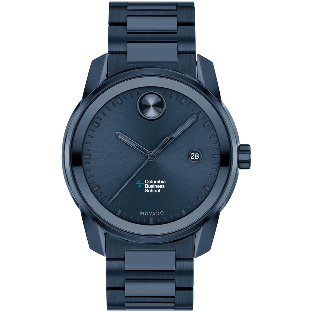 Columbia Business School Men's Movado BOLD Blue Ion with Date Window features high-tech materials, bold signature dot, and the sophistication of Movado with the Columbia Business logo. Complimentary personal engraving.