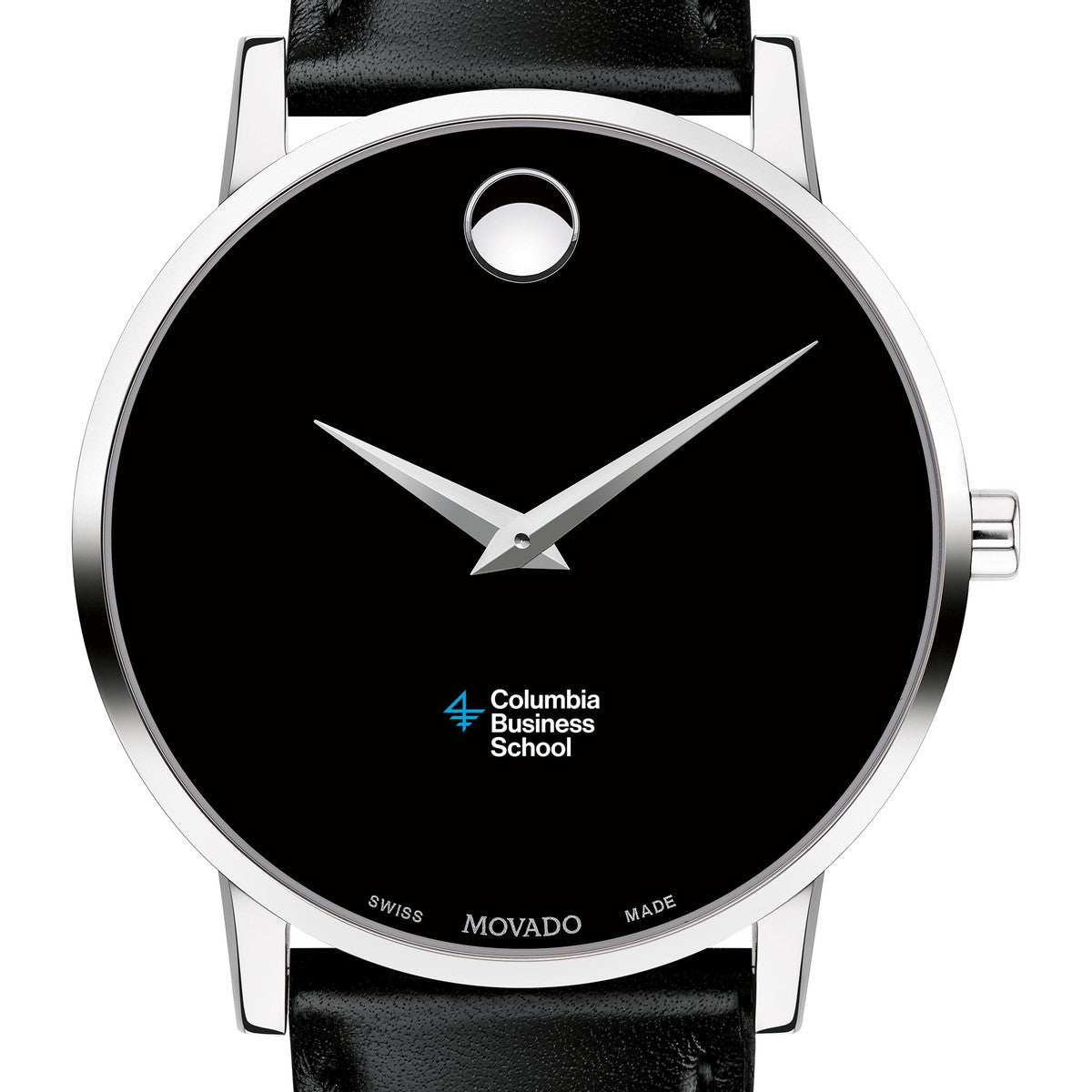 Columbia Business School Men's Movado Museum watch features the Columbia Business logo in full color at 6 o'clock on black dial. Created in 1947, the iconic concave dot symbolizes the sun at high-noon. Complimentary personal engraving.
