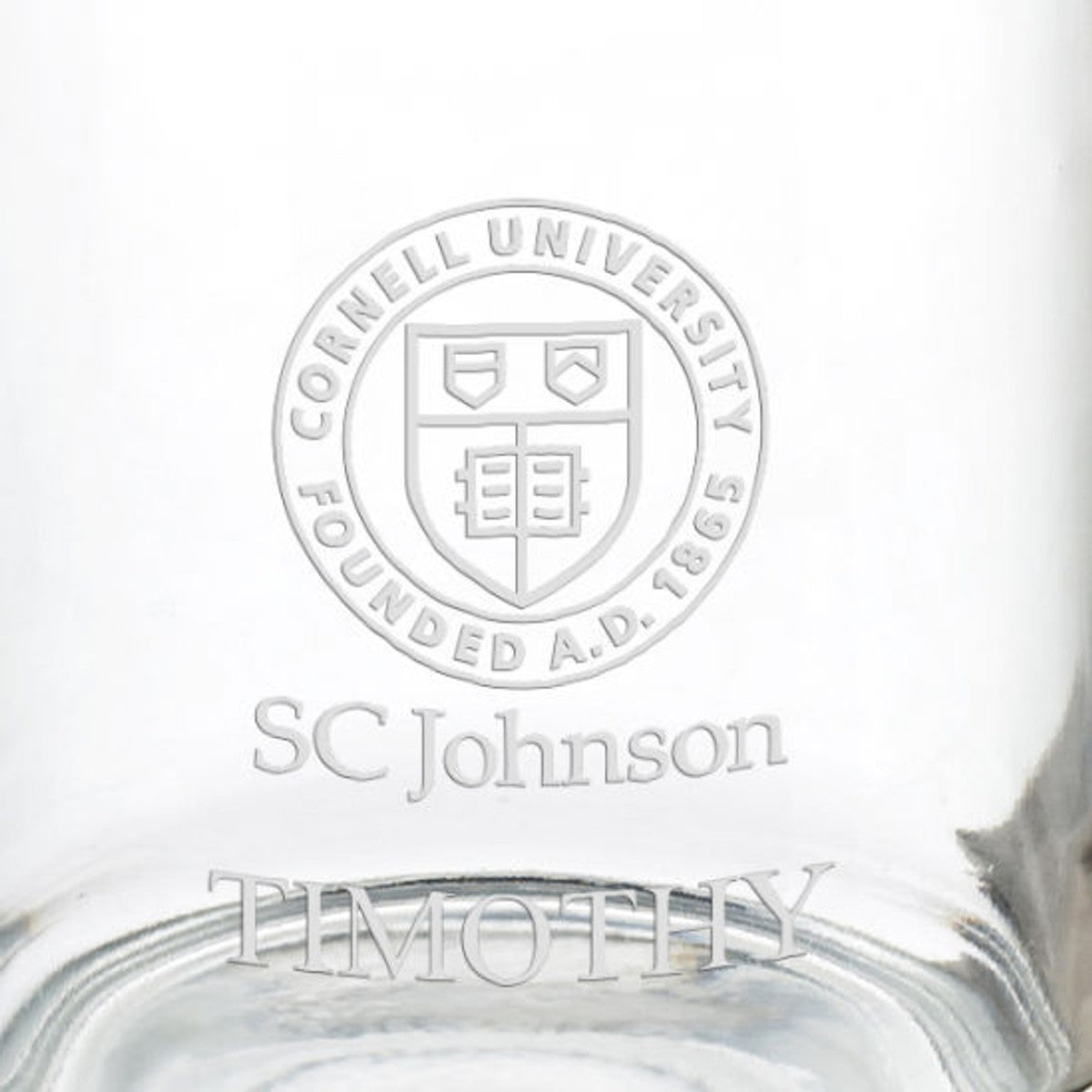 The SC Johnson College glass coffee mug is deep-etched with the Cornell SC Johnson College of Business logo. Generously proportioned 13 oz glasses are a pleasure to hold. Your name can be added under the logo for free.