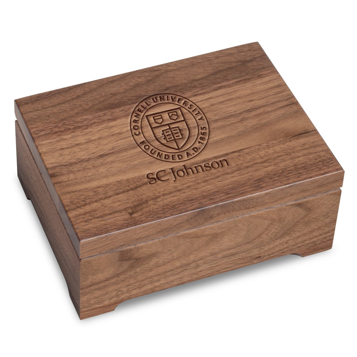 This Cornell SC Johnson College walnut desk box is perfectly sized to fit on a shelf, dresser, or desk, adding a touch of sophistication to any space. Its versatile design makes it suitable for various occasions, including graduations, anniversaries, or milestone birthdays. It is a thoughtful and timeless gift that will be cherished for a lifetime.