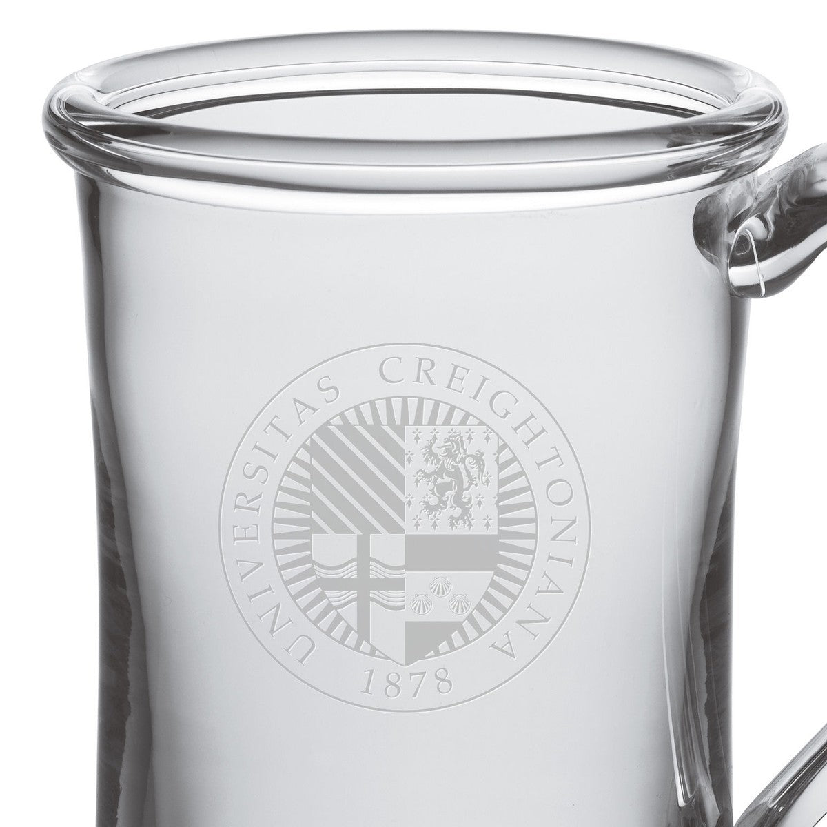 The Creighton Glass Tankard is an ideal choice if you're looking for a versatile glass. The enchantingly curved glass handle will help ensure that you don't spill a drop. The Glass Tankard has the Creighton Logo handsomely etched on the hand-blown glass.