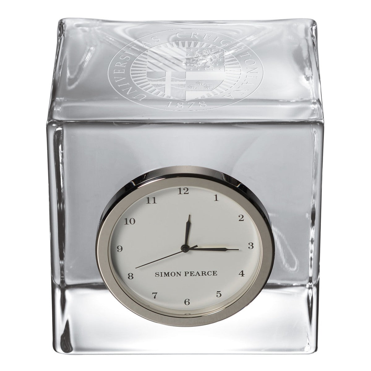 The Creighton University Glass Desk Clock is distinctly etched with the Creighton Logo, and is a great addition to any surface. The clock includes a traditional numbered face with a sweep hand to count the seconds.