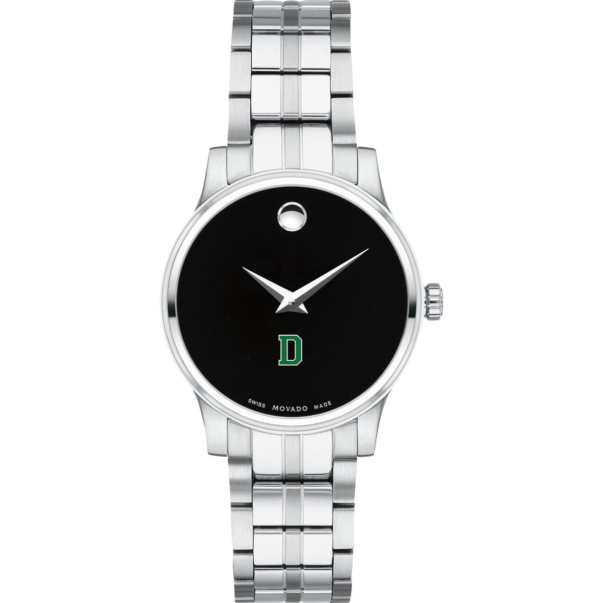 The Dartmouth College Women's Movado Collection watch showcases the iconic Dartmouth Logo in full color against a sophisticated black dial. This elegant timepiece, featuring the renowned concave dot symbolizing the sun at high noon, embodies timeless style. Personalize your watch with free engraving without any delay to your order.