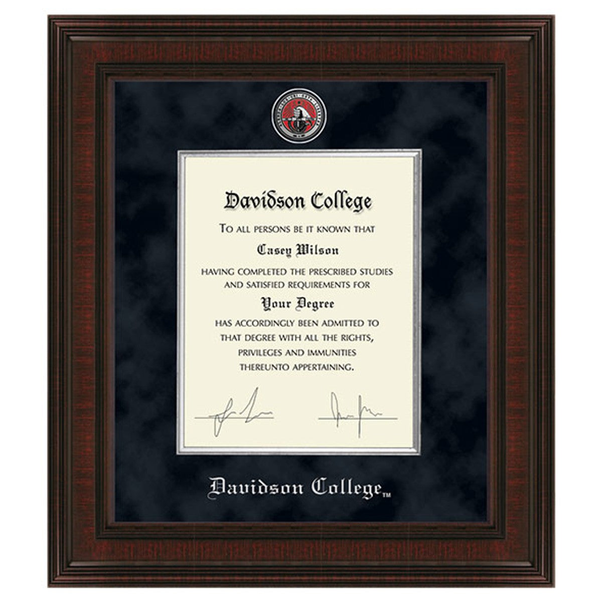 - Silver embossed Davidson College diploma seal