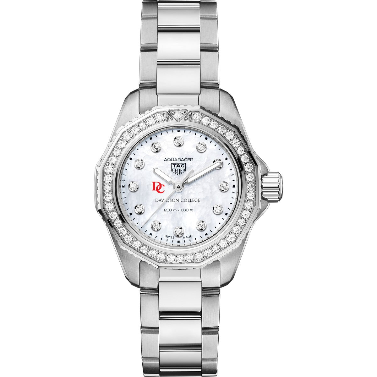 Davidson College Women's TAG Heuer Steel Aquaracer with Diamond Dial & Bezel features the Davidson logo. Complimentary personal engraving.