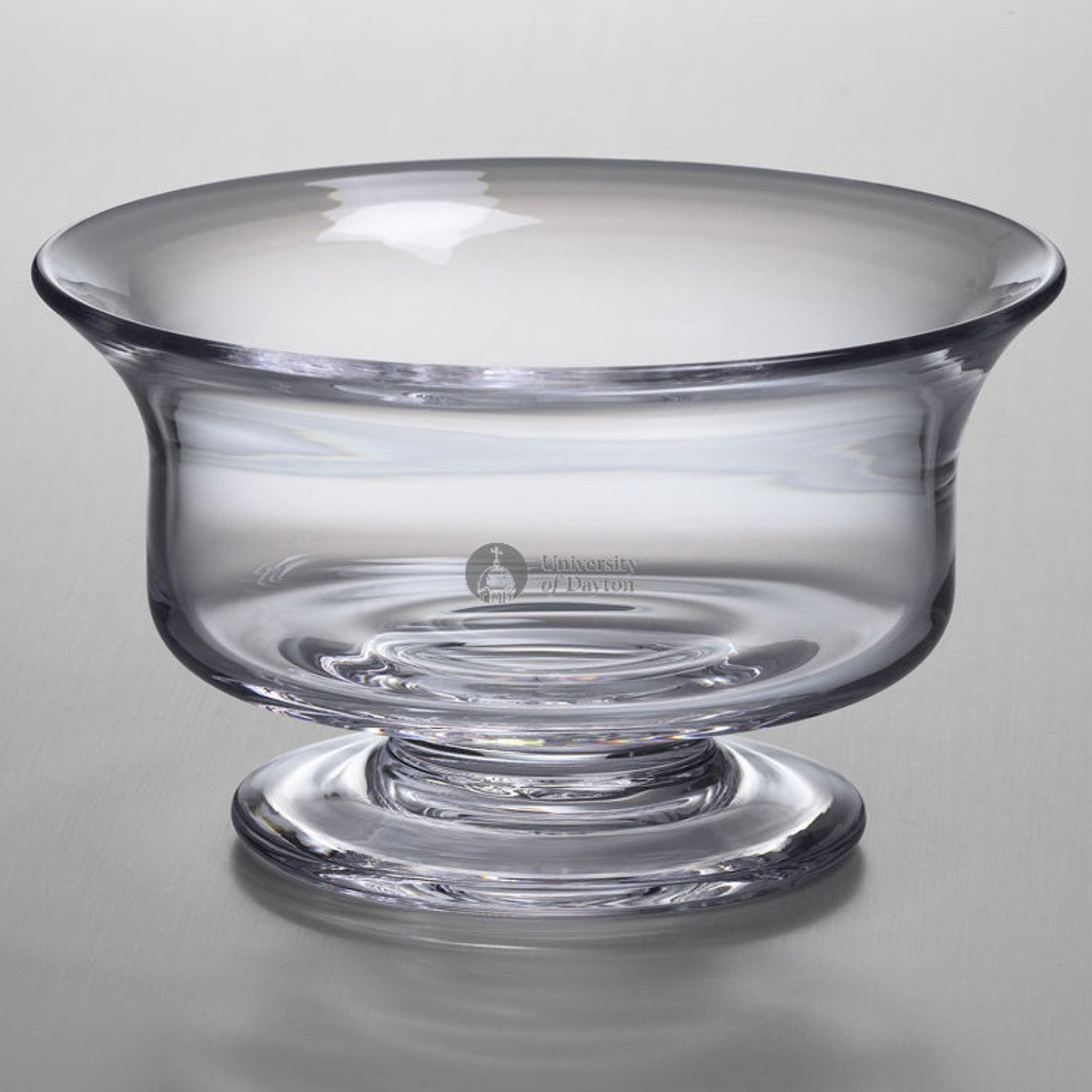 The University of Dayton Small Glass Presentation Bowl, with the Dayton Logo beautifully etched into the hand-crafted glass is a great gift. The traditional style of the bowl complements any Dayton home.