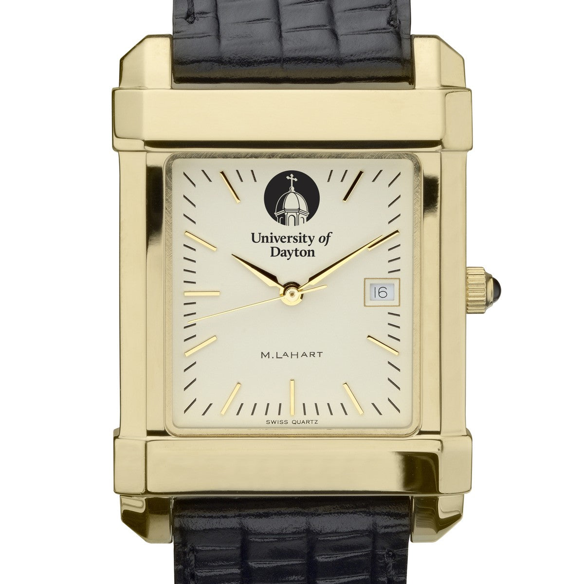 University of Dayton men's gold watch featuring the Dayton Logo on cream dial. Free Engraving on all watches.