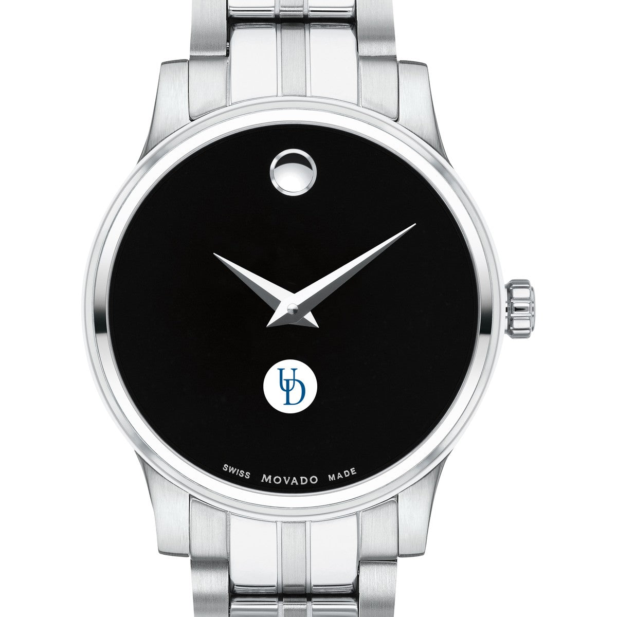 The University of Delaware Women's Movado Collection watch showcases the iconic Delaware Logo in full color against a sophisticated black dial. This elegant timepiece, featuring the renowned concave dot symbolizing the sun at high noon, embodies timeless style. Personalize your watch with free engraving without any delay to your order.