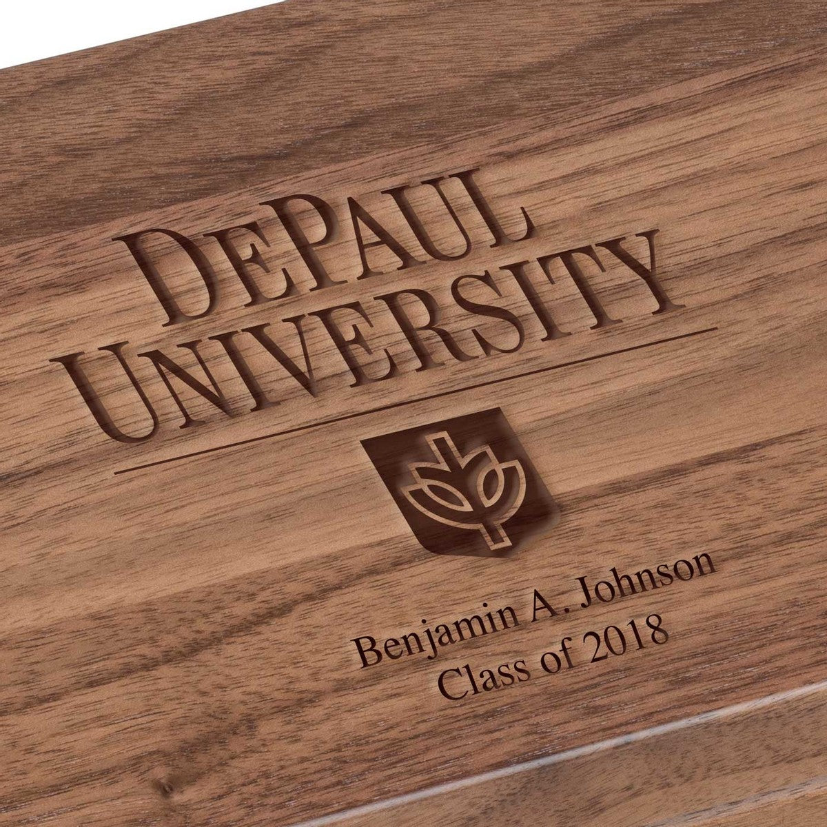 Our beautiful solid walnut desk box is made from hand-selected domestic walnut and crafted in the USA. Each box is hand finished with care, and proudly displays the DePaul Logo on the lid.
