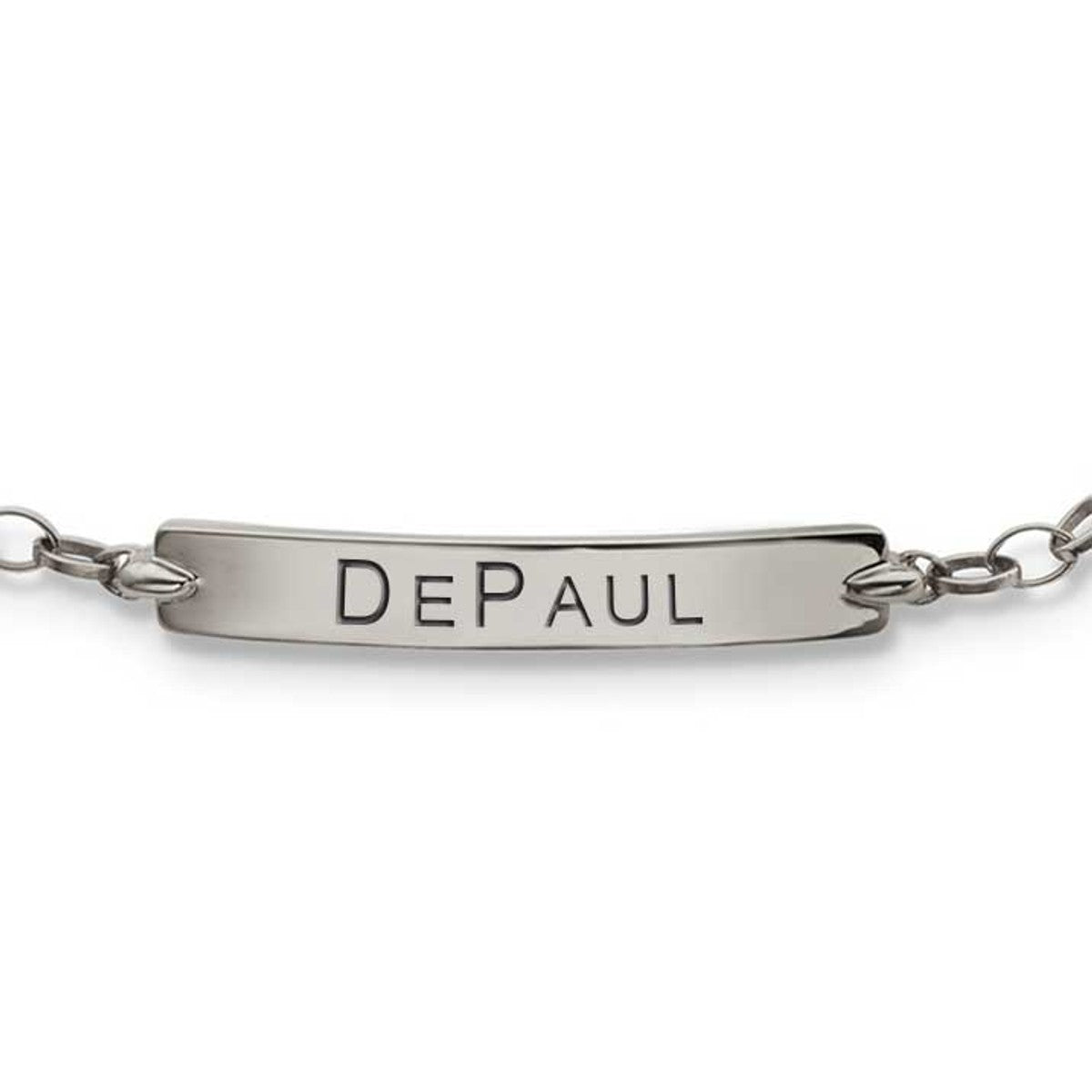 A feminine, delicate bracelet in sterling silver as appropriate for evening wear as day. "DEPAUL" engraved on slim banner accentuates the elegance.