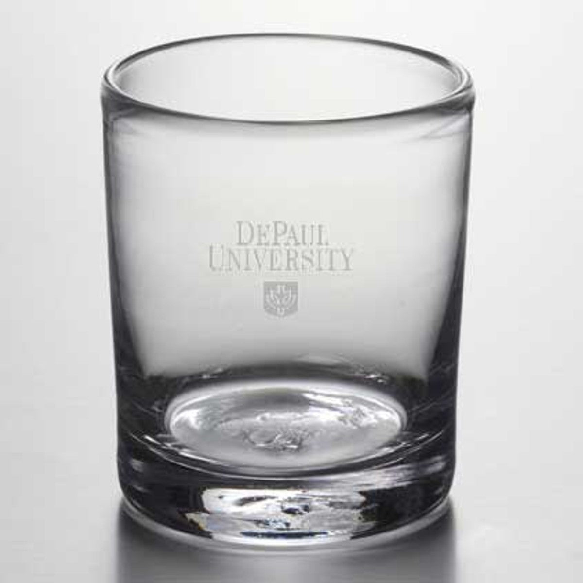 The DePaul Double Old Fashioned Glass features the DePaul Logo etched on the hand-blown glass. From its narrowly flared lip to its sleek, cylindrical body and sturdy, solid base, this glass epitomizes sophistication.