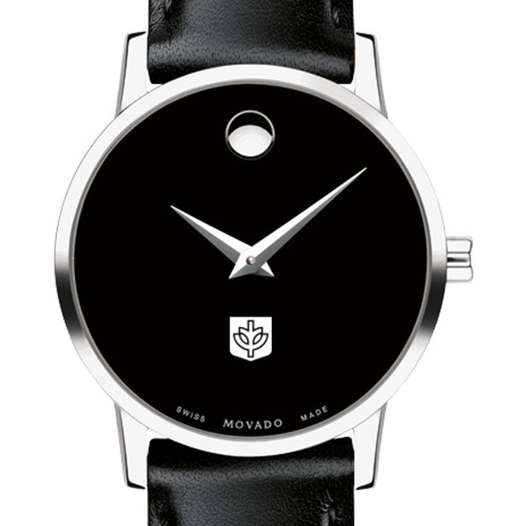 DePaul University Women's Movado Museum watch features the DePaul Logo in full color at 6 o'clock on black dial. Created in 1947, the iconic concave dot symbolizes the sun at high-noon. Complimentary personal engraving.