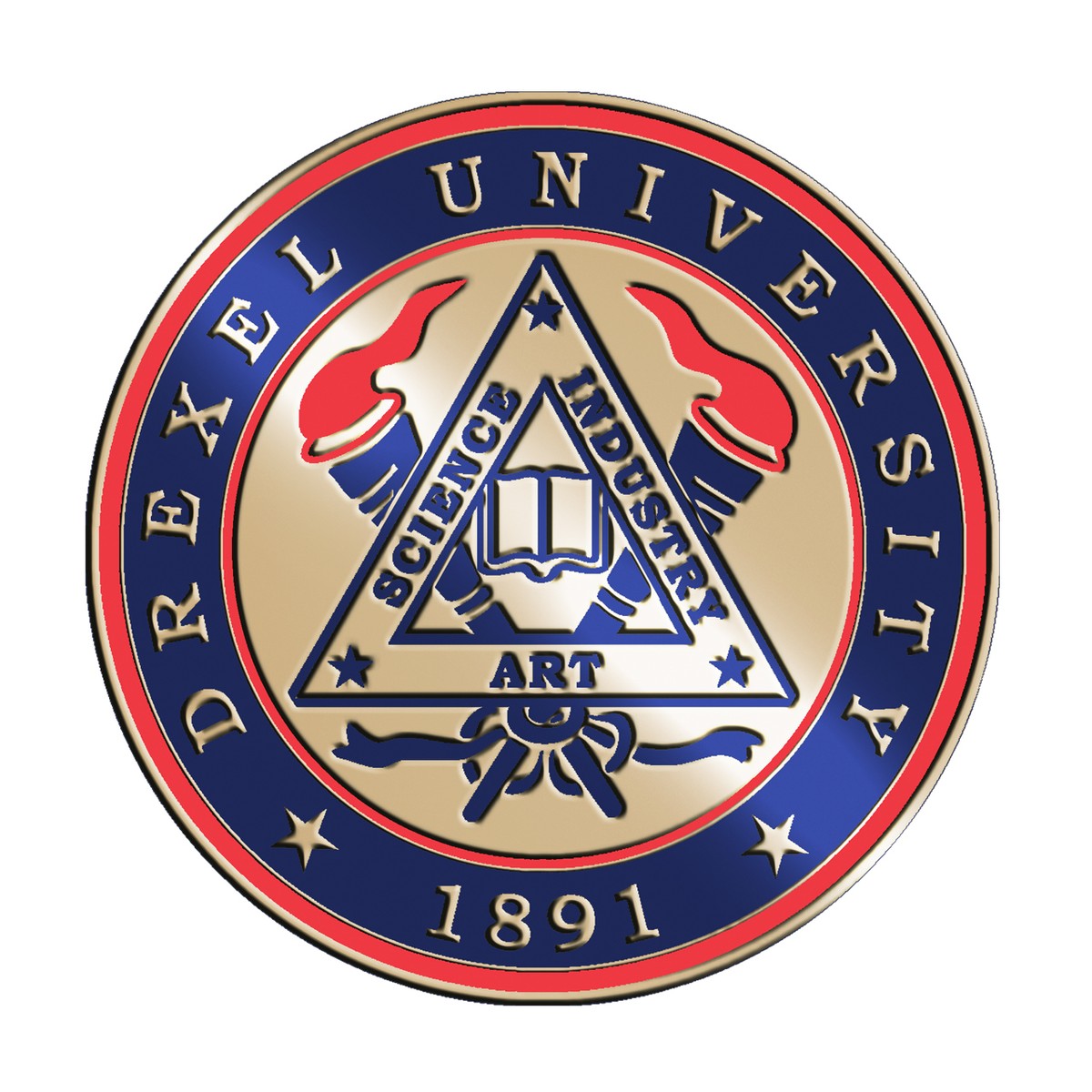 - Custom minted Drexel University seal with hand painted enamel accents; inset into bevel-cut opening