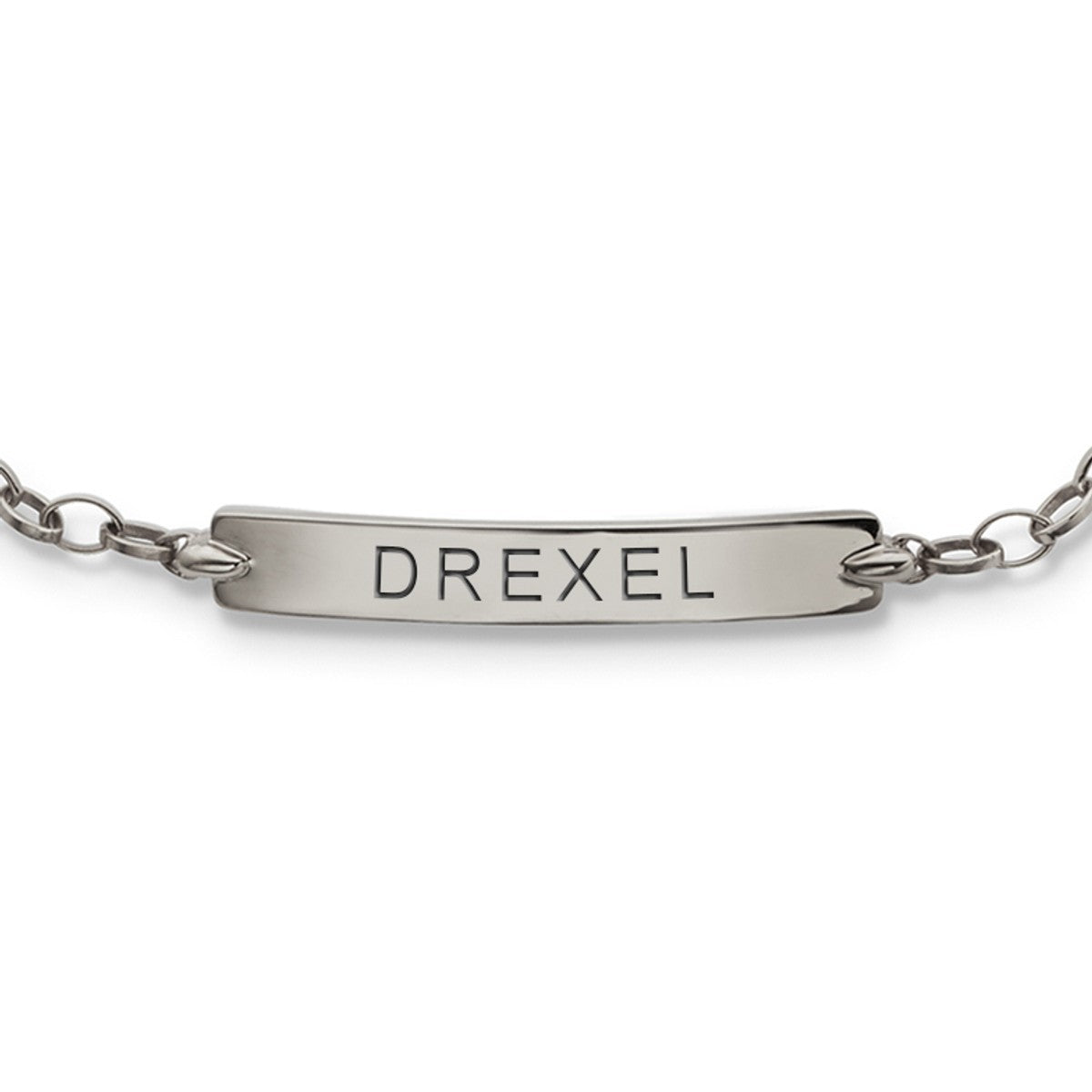A feminine, delicate bracelet in sterling silver as appropriate for evening wear as day. "DREXEL" engraved on slim banner accentuates the elegance.