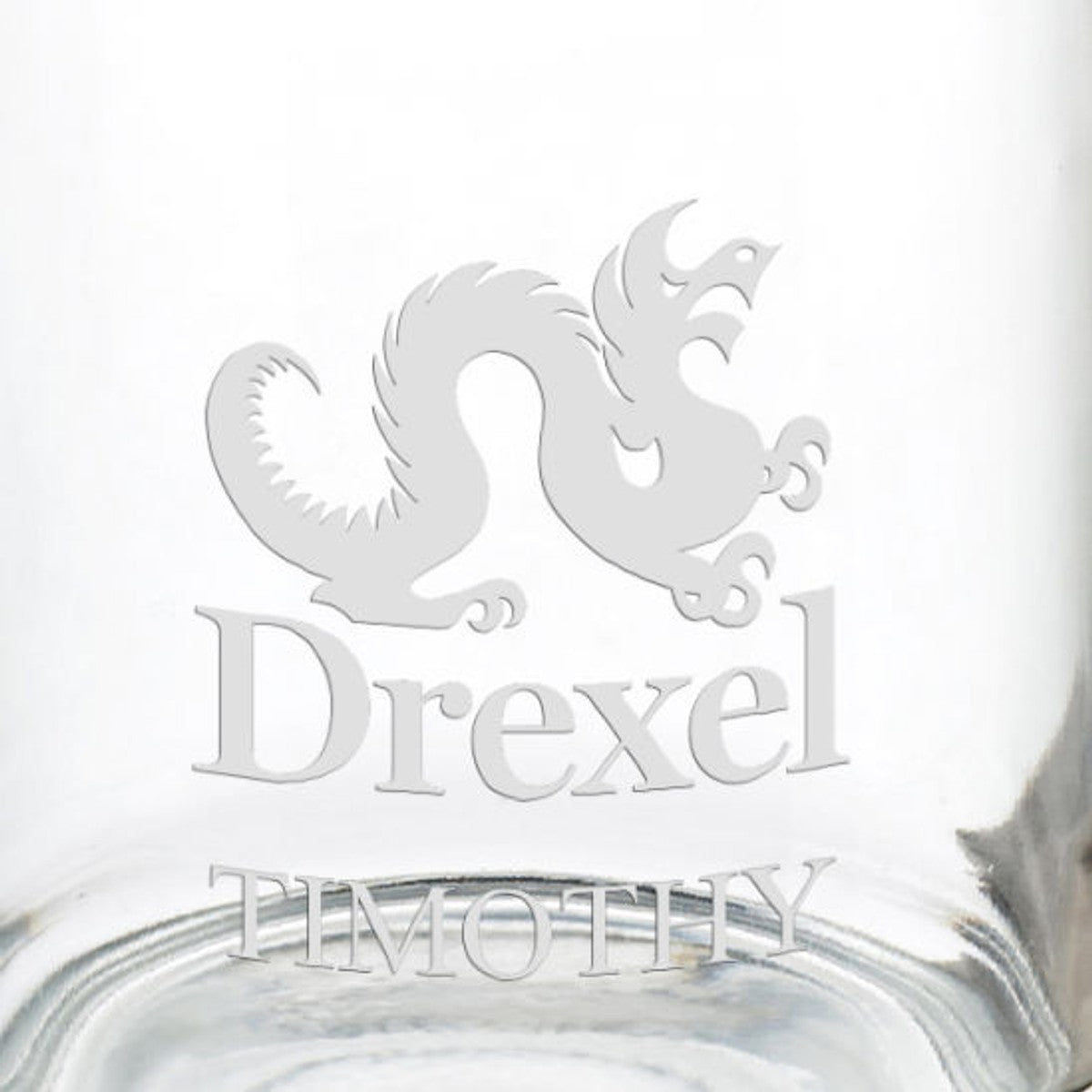 The Drexel glass coffee mug is deep-etched with the Drexel University logo. Generously proportioned 13 oz glasses are a pleasure to hold. Your name can be added under the logo for free.