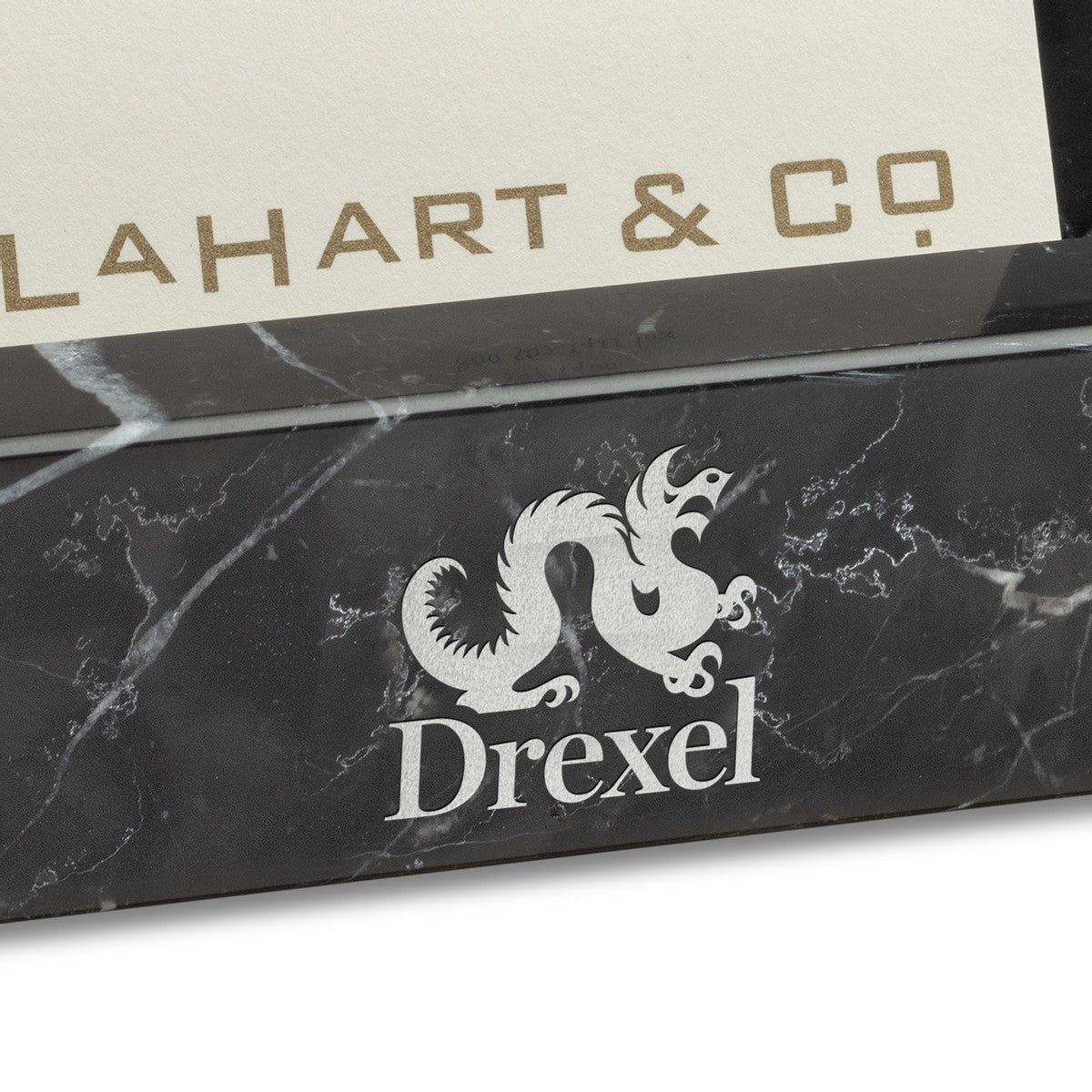 Perfect for new grads and seasoned professionals, the officially licensed Drexel University marble cardholder is an essential for the desk of Drexel fans. The Drexel Logo is elegantly featured on the front of this substantial, solid marble card holder and accommodates all standard size business cards.