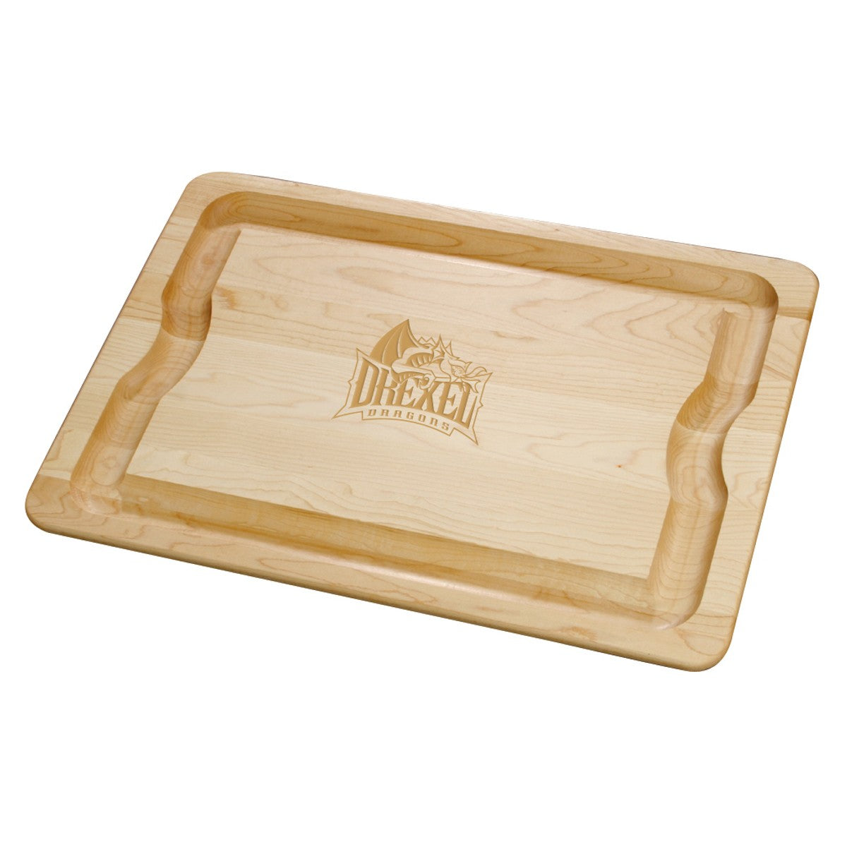 The Drexel University Maple Cutting Board is crafted from sturdy Maple with undercut handles and a wide groove to collect juices while you carve. Ample surface featuring the Drexel Logo is suitable for both cutting and serving.