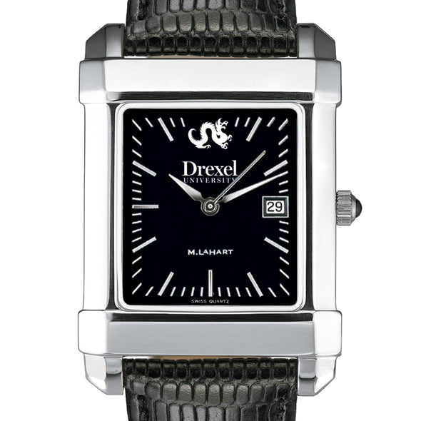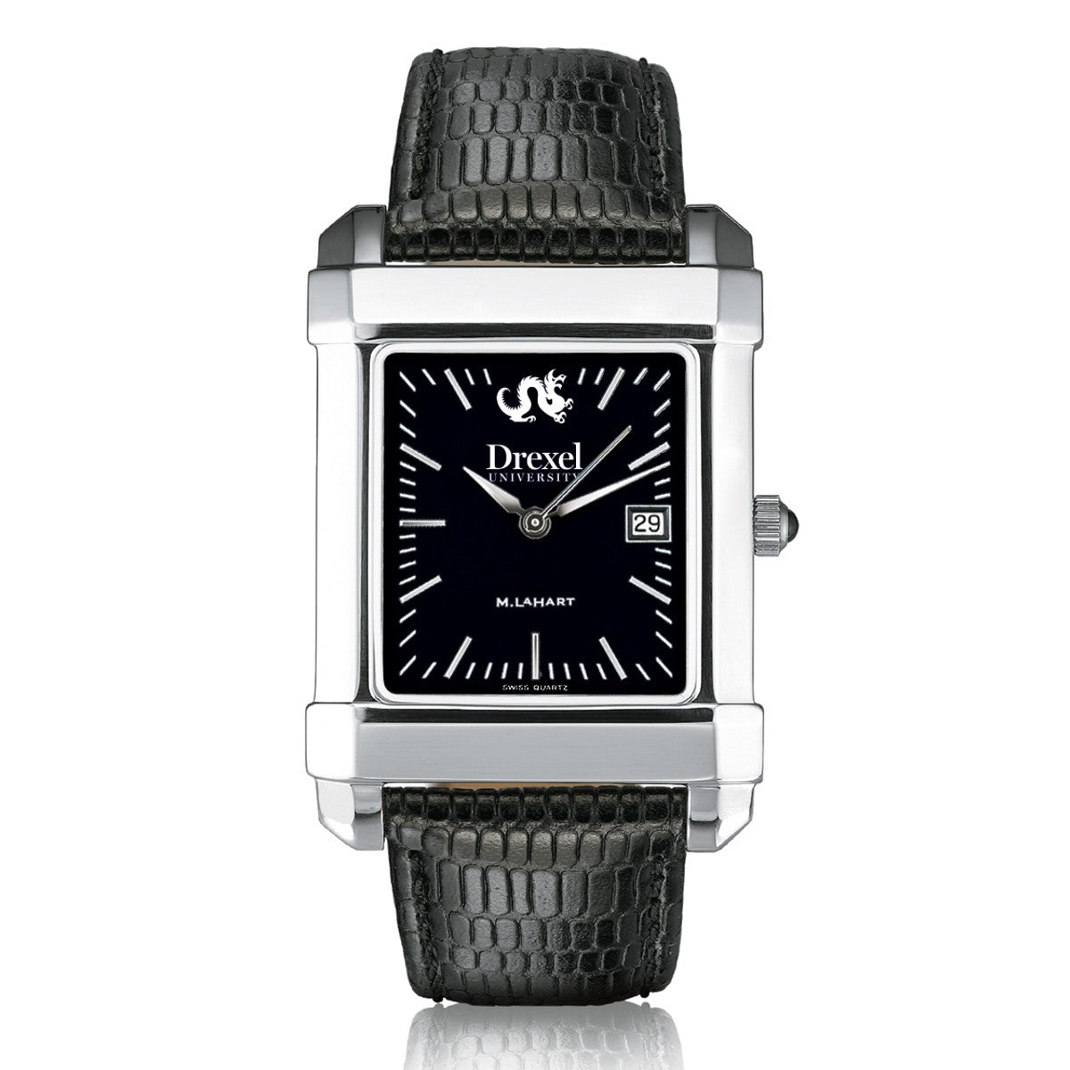 Drexel University men's steel watch featuring the Drexel Logo on black dial.