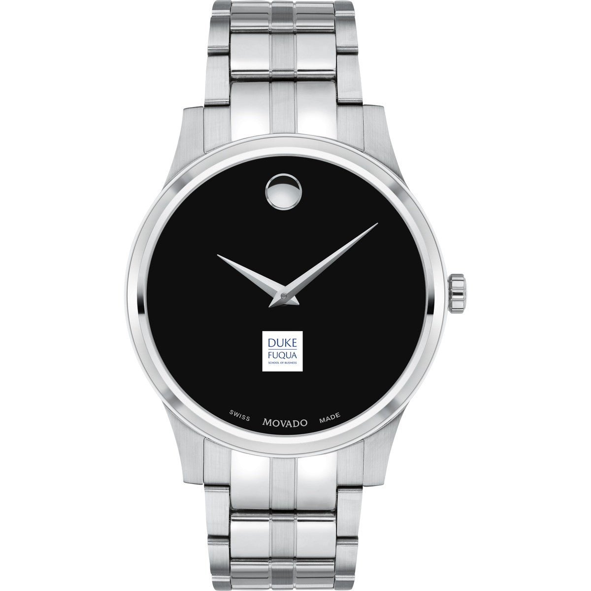 The Duke Fuqua School of Business Men's Movado Collection watch showcases the iconic Duke Fuqua logo in full color on a sophisticated black dial. This classic timepiece, featuring the renowned concave dot symbolizing the sun at high noon, has been a design masterpiece since its creation in 1947. Personalize your watch with free engraving without any delay to your order.