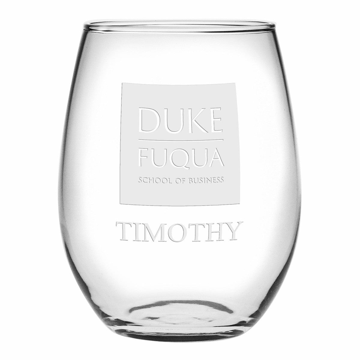 These modern Duke Fuqua School of Business stemless wine glasses are perfect for every occasion and any type of wine. Each glass is made in the USA and laser etched with Duke Fuqua logo.