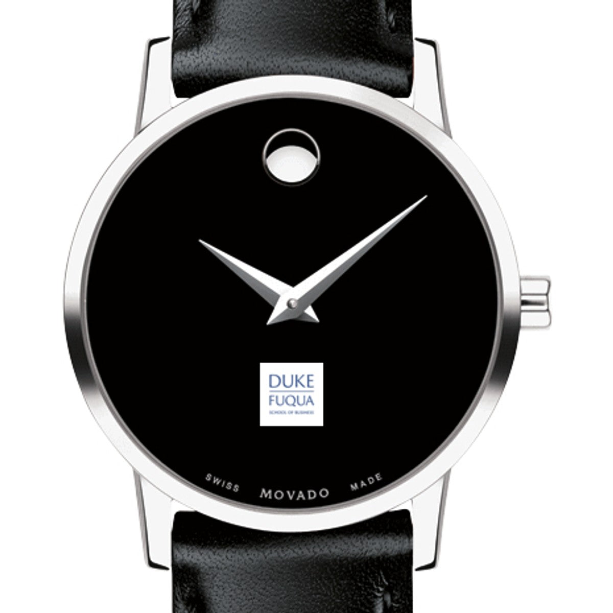Duke Fuqua School of Business Women's Movado Museum watch features the Duke Fuqua logo in full color at 6 o'clock on black dial. Created in 1947, the iconic concave dot symbolizes the sun at high-noon. Complimentary personal engraving.
