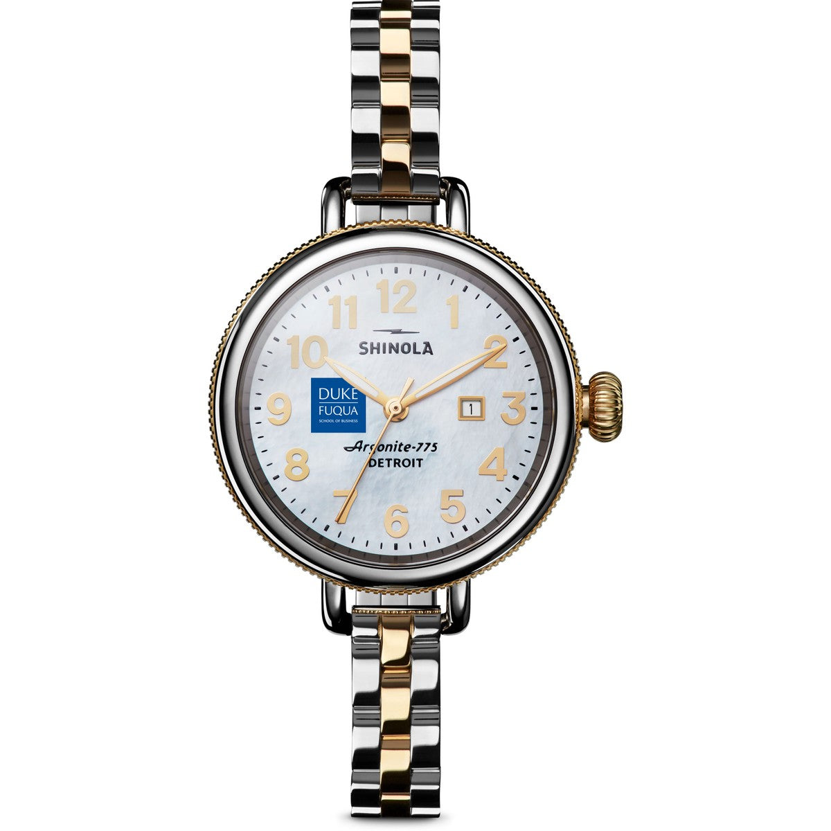 Hand-built from the finest components, the Duke Fuqua School of Business Birdy features a mother-of-pearl dial in a stainless steel case with a classic coin edge detail. A two-tone bracelet completes the look. Dainty and delicate, sharp and strong, this watch is proof pretty little things can make pretty big statements. Complimentary personal engraving