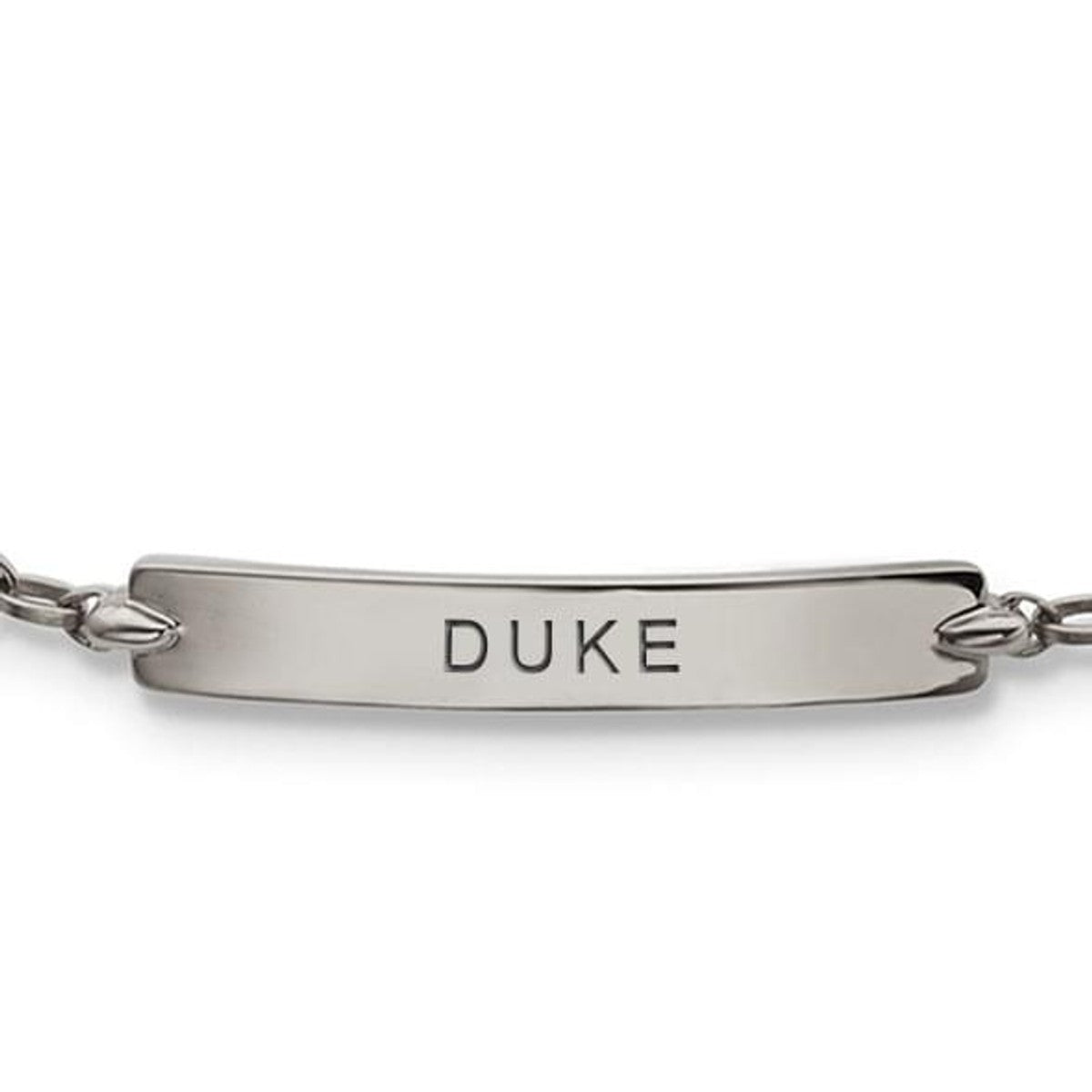 A feminine, delicate bracelet in sterling silver as appropriate for evening wear as day. "DUKE" engraved on slim banner accentuates the elegance.