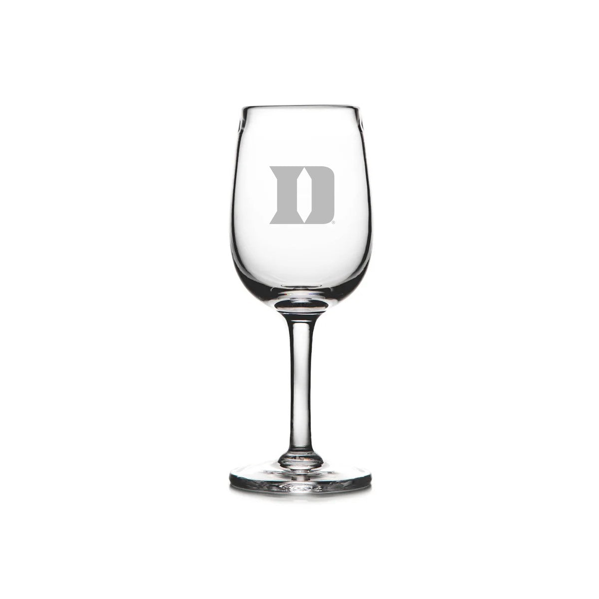 The Duke University White Wine Glass offers both elegance and functionality, making it a refined addition to any collection. The Duke Logo is tastefully etched onto the hand-blown glass, allowing you to showcase your Duke pride while enjoying your favorite vintage. Its gracefully tapered bowl enhances the aroma and flavor of white wines, perfect for both casual and formal settings.