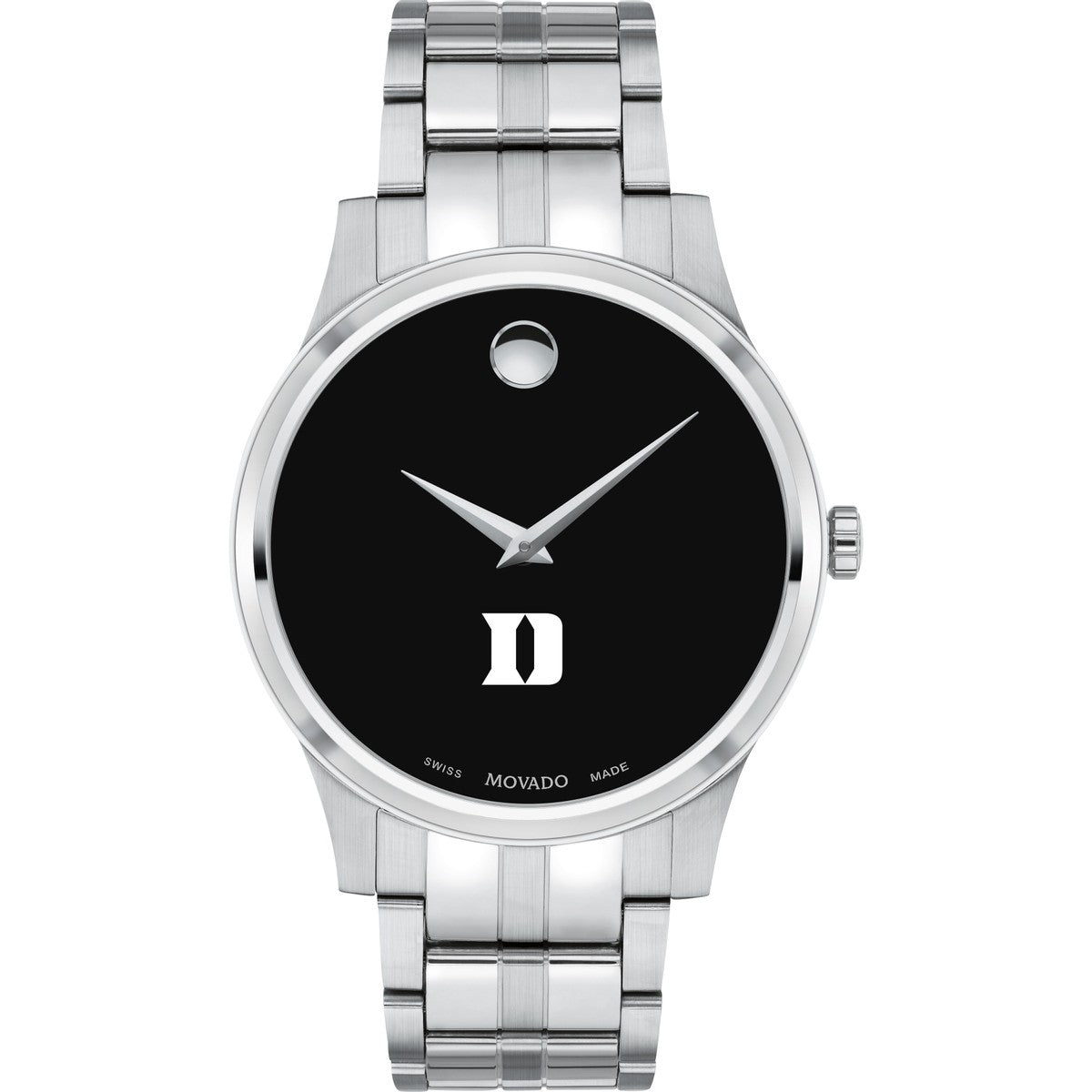The Duke University Men's Movado Collection watch showcases the iconic Duke Logo in full color on a sophisticated black dial. This classic timepiece, featuring the renowned concave dot symbolizing the sun at high noon, has been a design masterpiece since its creation in 1947. Personalize your watch with free engraving without any delay to your order.