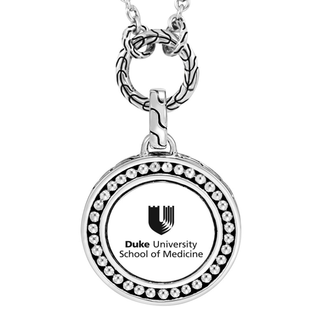 Understated elegance for alumni and grads. The Duke University School of Medicine Amulet is complemented by the modest sterling silver chain.