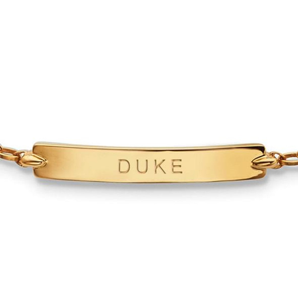 A feminine, delicate bracelet in 18K gold as appropriate for evening wear as day. "DUKE" engraved on slim banner accentuates the elegance.