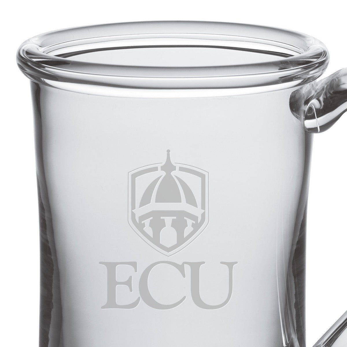The ECU Glass Tankard is an ideal choice if you're looking for a versatile glass. The enchantingly curved glass handle will help ensure that you don't spill a drop. The Glass Tankard has the ECU Logo handsomely etched on the hand-blown glass.